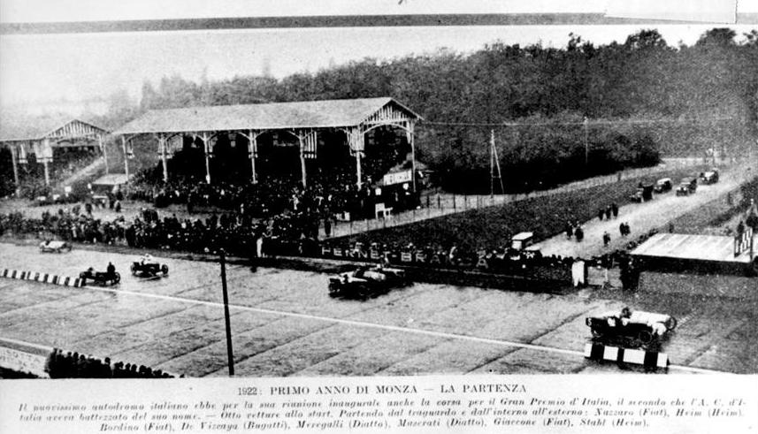 Il primo Gran Premio d''italia disputato sul nuovo Autodromo di Monza non ebbe grande fortuna. Circa 200 mila persone affluirono a Monza, vinse Bordino su Fiat 804 davanti a Nazzaro, stessa macchina, ma solo otto auto delle 31 iscritte presero il via. Vedi a pag. https://it.wikipedia.org/wiki/Gran_Premio_d%27Italia_1922 cosa successe.