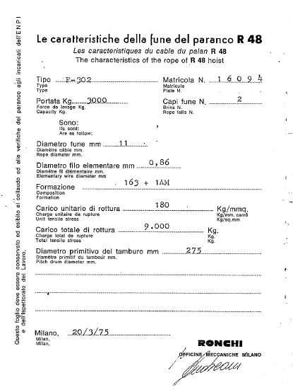 Giugno 2021 - Paranco mod. R48 installato il 20/03/1975 presso la Fontana Luigi SpA in Veduggio e tuttora funzionante. Gentile concessione di Fabrizio Fontana